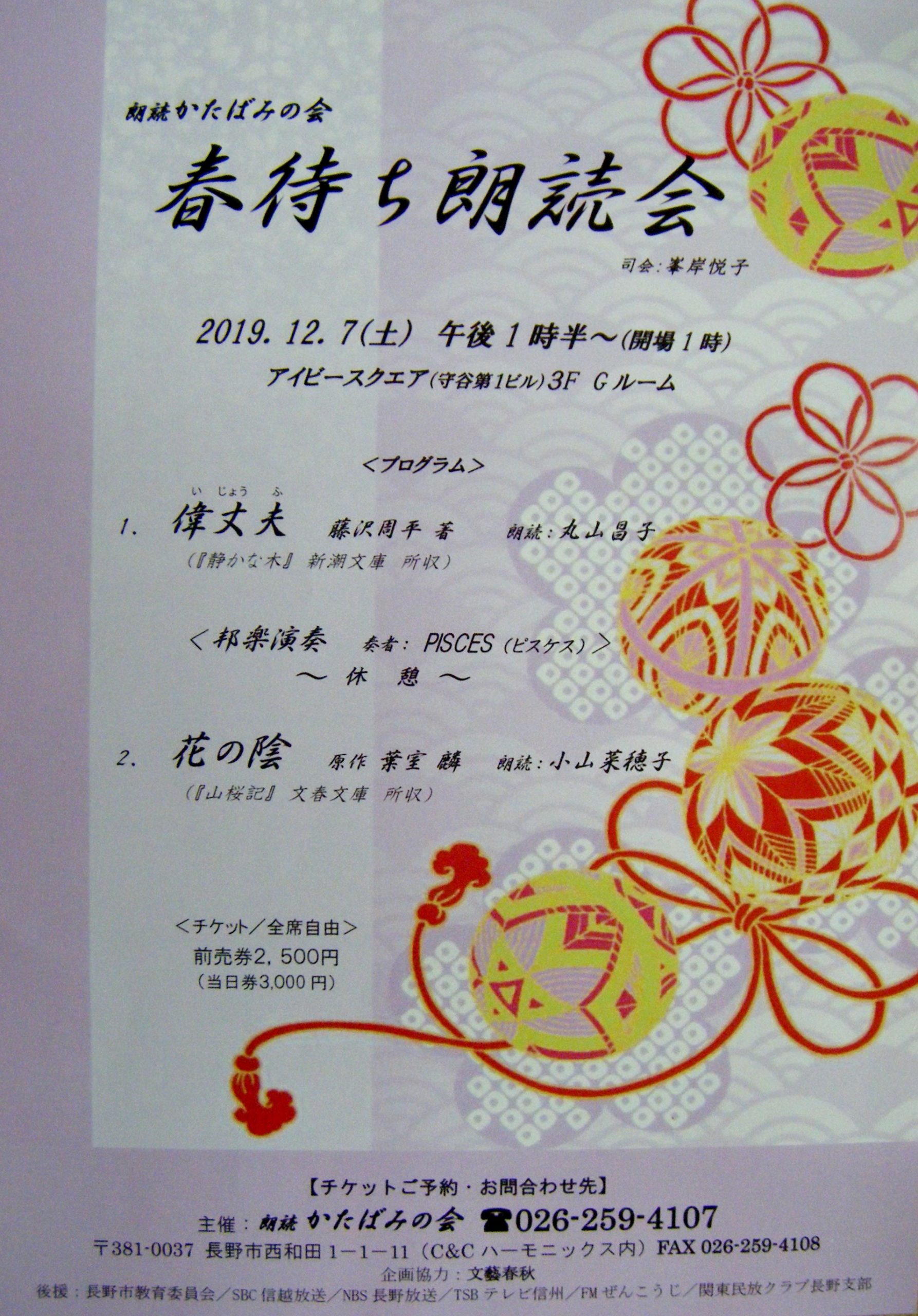 「楽しい朗読・ナレーション講座」の小山菜穂子講師が朗読会を開催します。