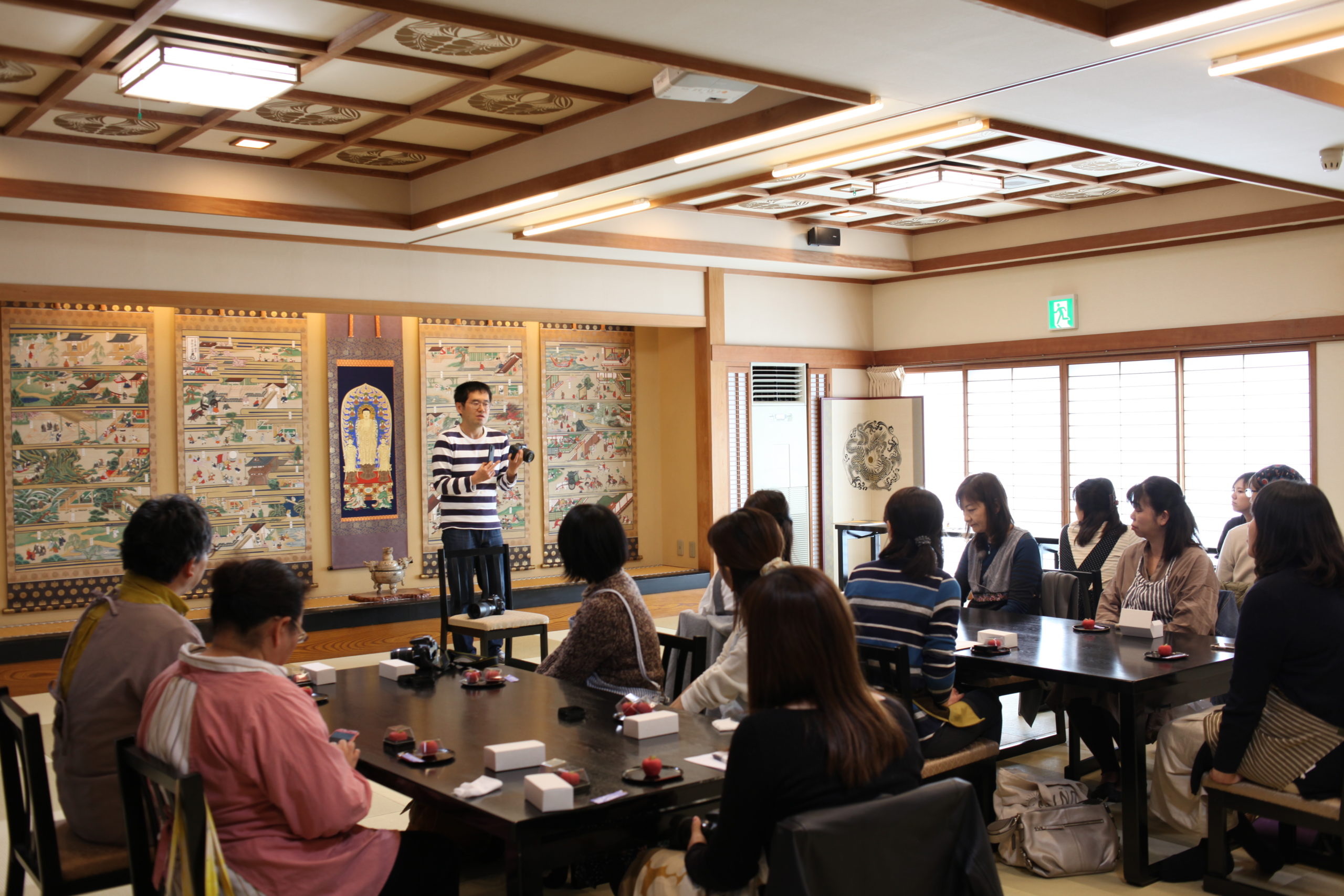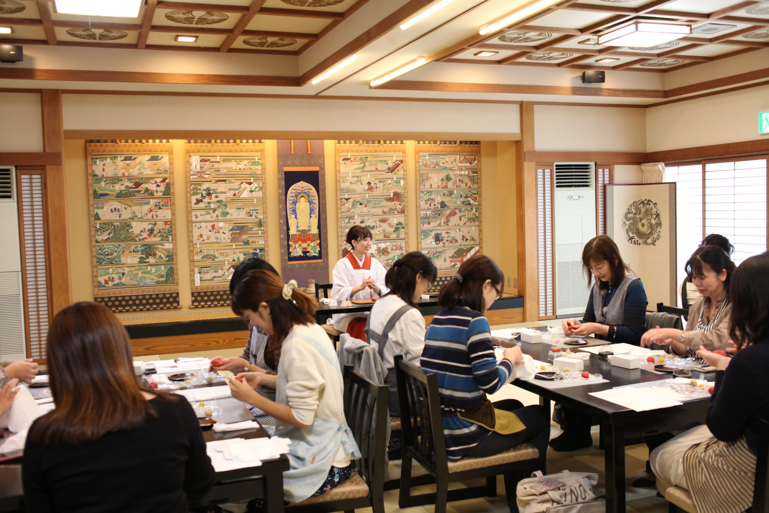 まりちゃんせんせいがゆっくり丁寧に教えてくださるので、かわいいりんごがたくさん出来あがりましたよ🍎かわいいけれどもリアルなりんごちゃんでした♪練りきりが完成したら、はいしゃさんの写真レッスンです📷美味しく撮るコツをたくさん教えていただきましたよ〜😋みなさん思い思いに色んな場所で映え写真の撮影をしました!最後は淵之坊さまの美味しく美しい精進料理をいただきました😋今回も美味しく楽しい講座になりました🥢