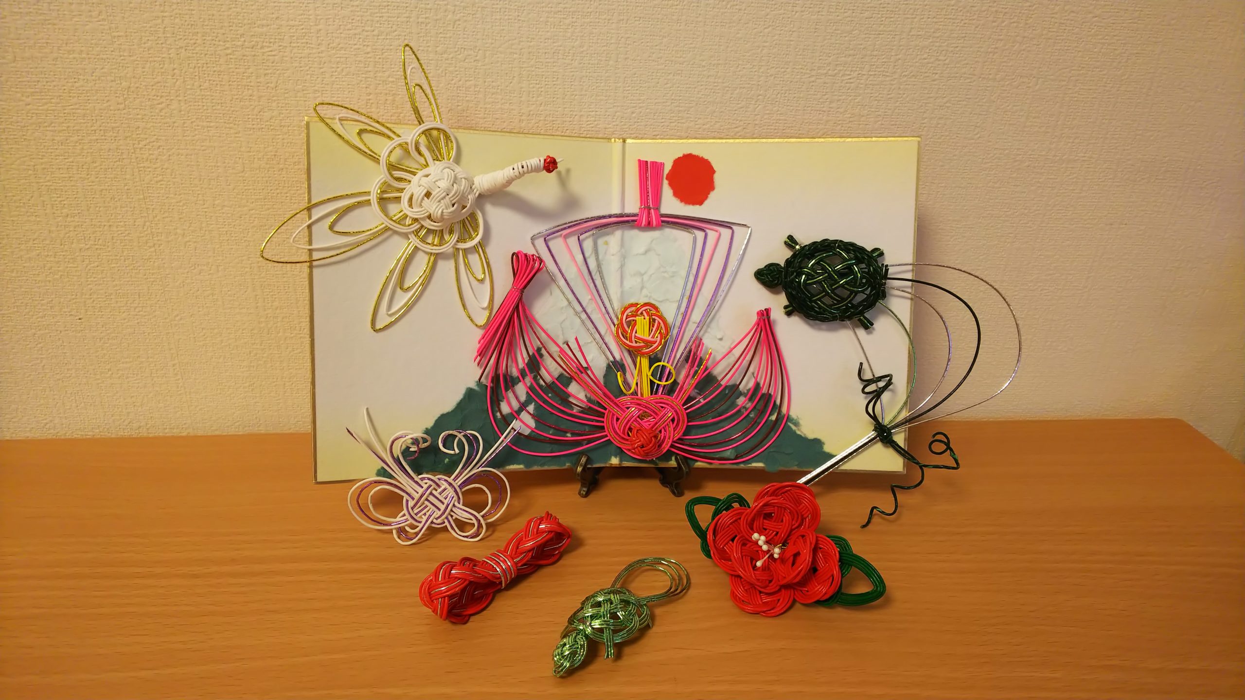 基本の結び方からじっくりと学んでいただき、お祝い事や贈り物、さらにアレンジして普段使いの物まで作ります。