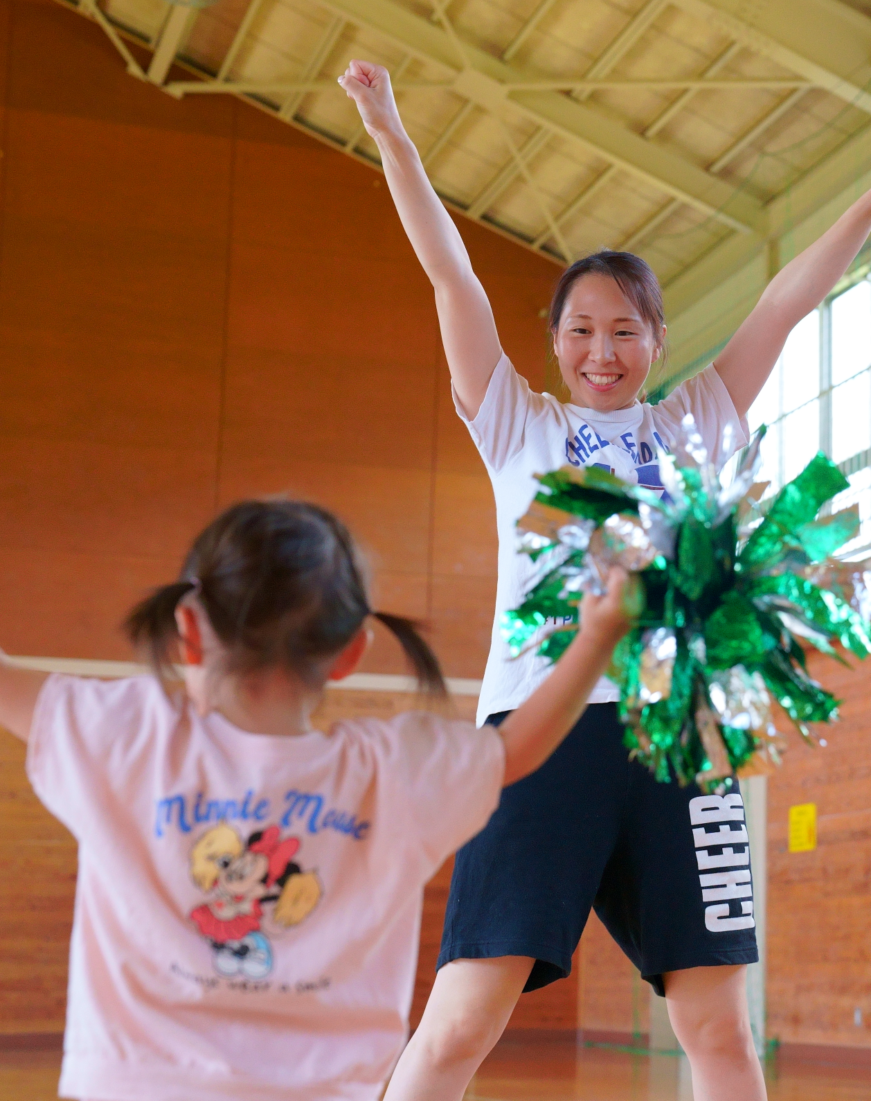 チアリーディングは、笑顔や明るさ、元気良さを表現し、観客や仲間に勇気を与え、元気づけるスポーツです。チアリーディングに必要なアームモーションやジャンプ、ダンス、タンブリング(マット運動)、スタンツなどの技術を基礎から指導いたします。