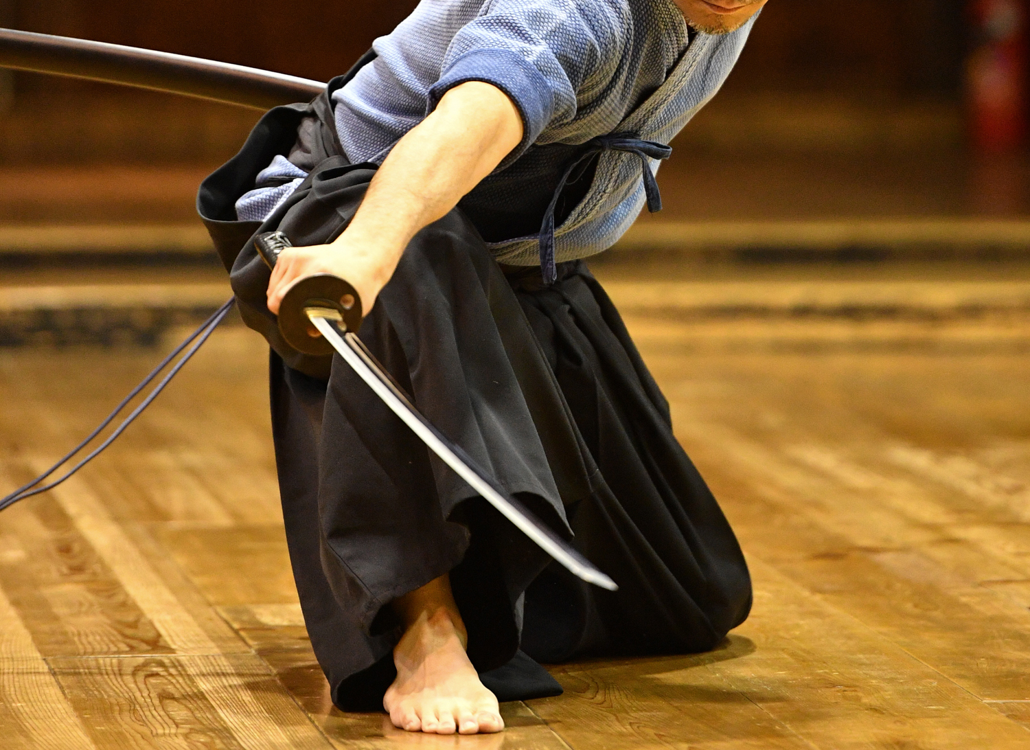 正しい姿勢や体幹を意識した日本刀の操作を、模擬刀(貸出用有)を使って楽しみながら修練します。性別年齢問わず、基本から適切に稽古します。