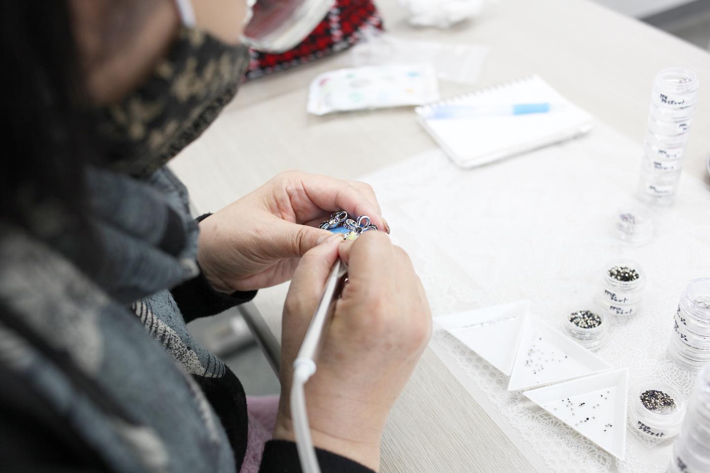 グルーに埋め込んでいるスワロフスキーも細かい!