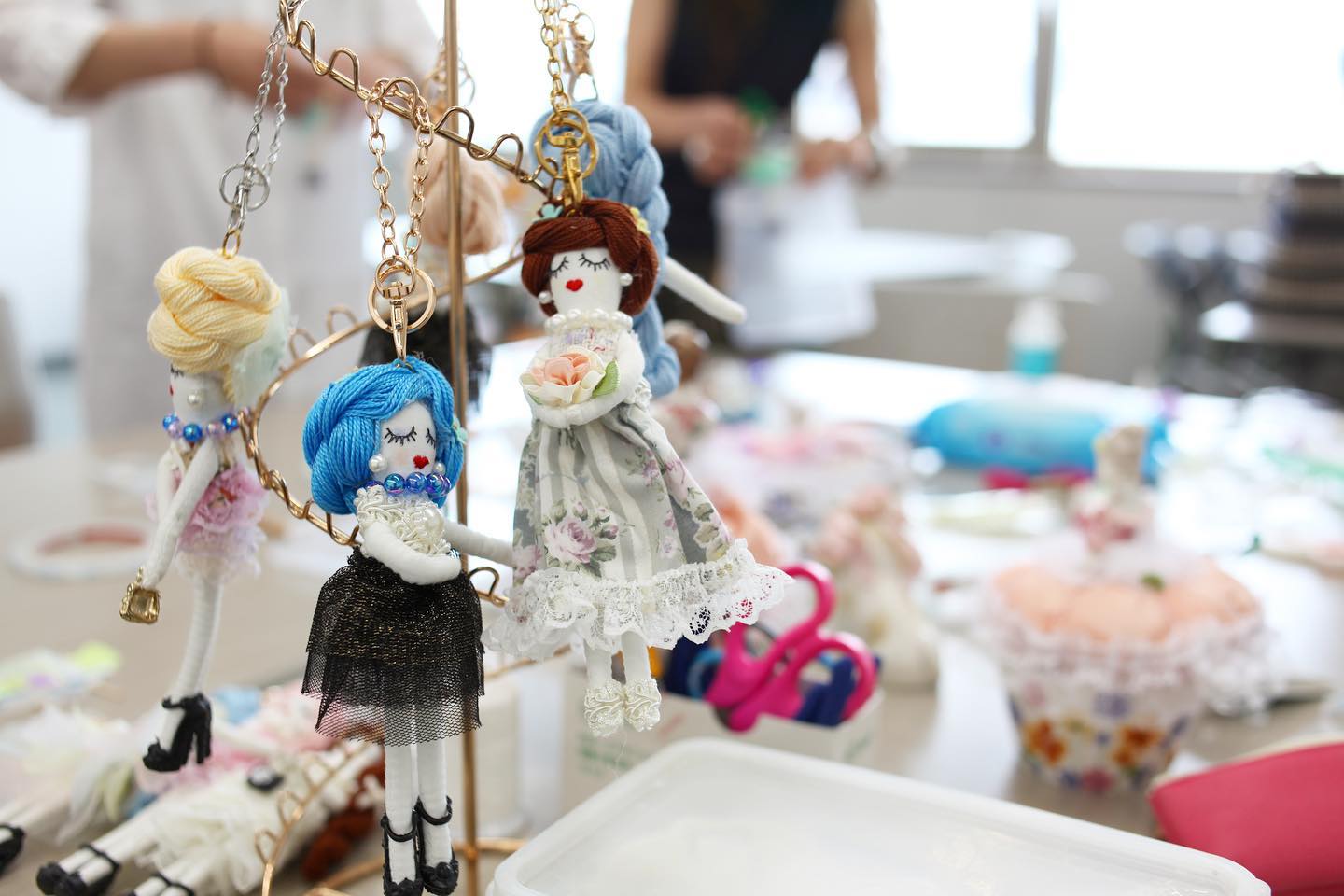 今日は単発講座「バッグチャーム」講座が開催されました♪髪も洋服も小物もお好きな物を選べます!みなさんそれぞれかわいいバッグチャームが完成して大満足していただけました。