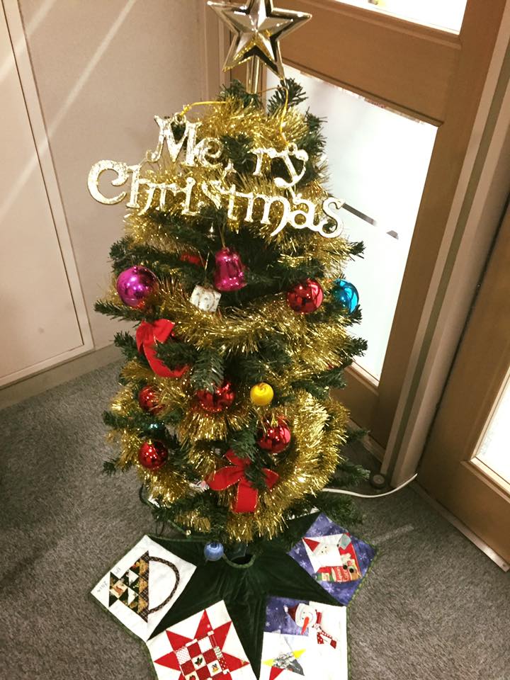 クリスマスツリー登場しましたー\(^o^)/ツリー足元の『ツリースカート』かわいいですよね!「アメリカン・パッチワーク・キルト」講座の松本先生にいただいたんです\(^o^)/パッチワークのツリースカートとってもステキです!なんだかウキウキしますね♪