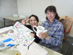 今日は横山まゆみ先生の「はじめてのポーセラーツ②」講座へお邪魔してきました(*^_^*)こちらの受講生さんすごいんですよ!引き出物にご自分で作ったポーセラーツの作品を用意したんですって!びっくりです(゜o゜)!ポーセラーツの魅力にはまっていますね~!今回の作品…