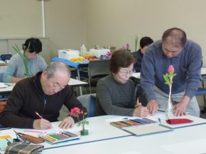 白馬では雪が80cmも積もったそうですよ~(゜o゜)長野は積もらなかったですが寒いですね~((+_+))今日は「色えんぴつによる花の絵」講座にお邪魔してきました~\(^o^)/みなさんもくもくと花を描いています!題材の植物たちは津野先生が用意してくださいます(…
