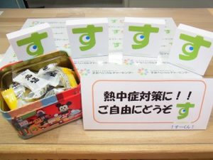 涼しくなったり暑くなったり気候の変化が激しいですね(+_+)こんなに天気が不安定だと身体もなかなかついていけない~(@_@;)夏バテや熱中症に気をつけなくちゃ!ということで、カルチャーセンターの2F受付窓口に熱中症対策用の塩飴を用意しました(^_-)-☆水分補…