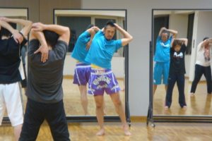 火曜日の夜、『バシッ!!』 、『バシンッ』 という音が 5階のスタジオに響きわたっています (^_^.)何の音かわかりますか?? じつは......「キックボクシング」講座のミット打ちの音です☆今回お邪魔した講座は、皆さん真剣です。でも、よ~くお顔を見ると笑顔…