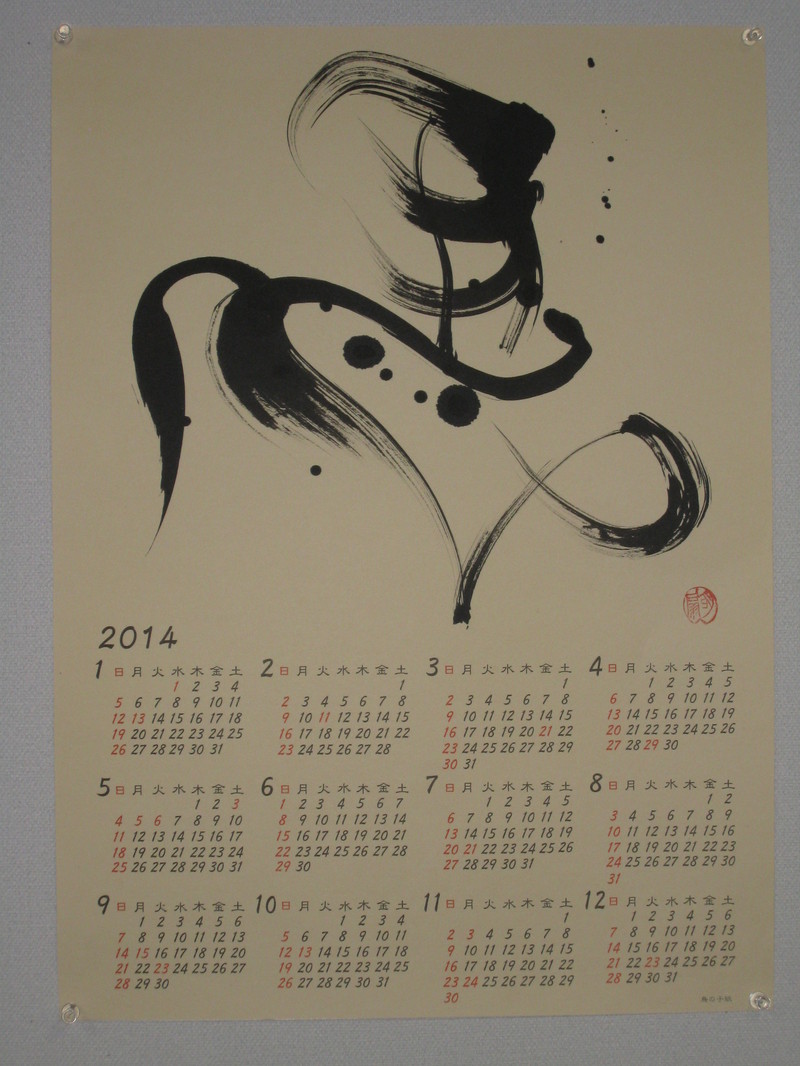 よ~し、早速 カルチャーにも。ってことで、明扇先生の 「ひだりうま」の書を飾りました。