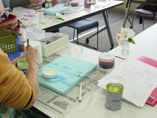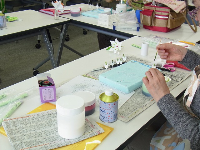 今日は「ディップアート アメリカンフラワー」講座へ