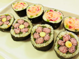 初回は春らしいお花の巻き寿司を作りましたよー!