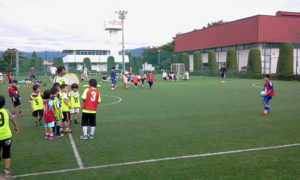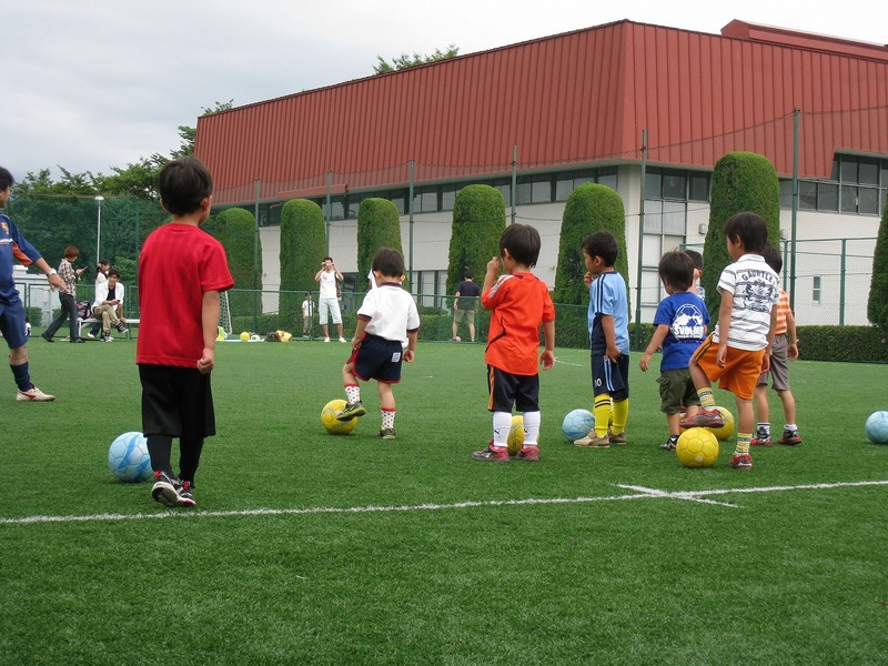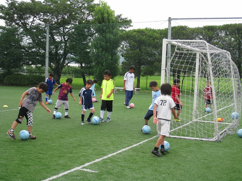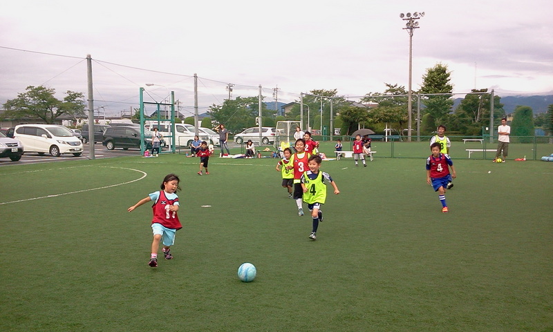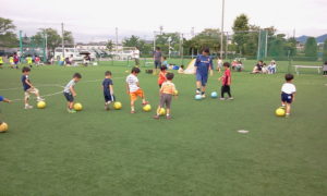 開始早々パラパラ降り出した雨もその後止み、受講生及び御家族が楽しみにしていたキッズサッカー館外講座が、須坂市の富士通総合グラウンドで開催されました。普段は屋内で行っているため、子供達は大喜び! 君たちの真剣な眼差しと、笑顔は大変素敵でしたよ!(^^)!