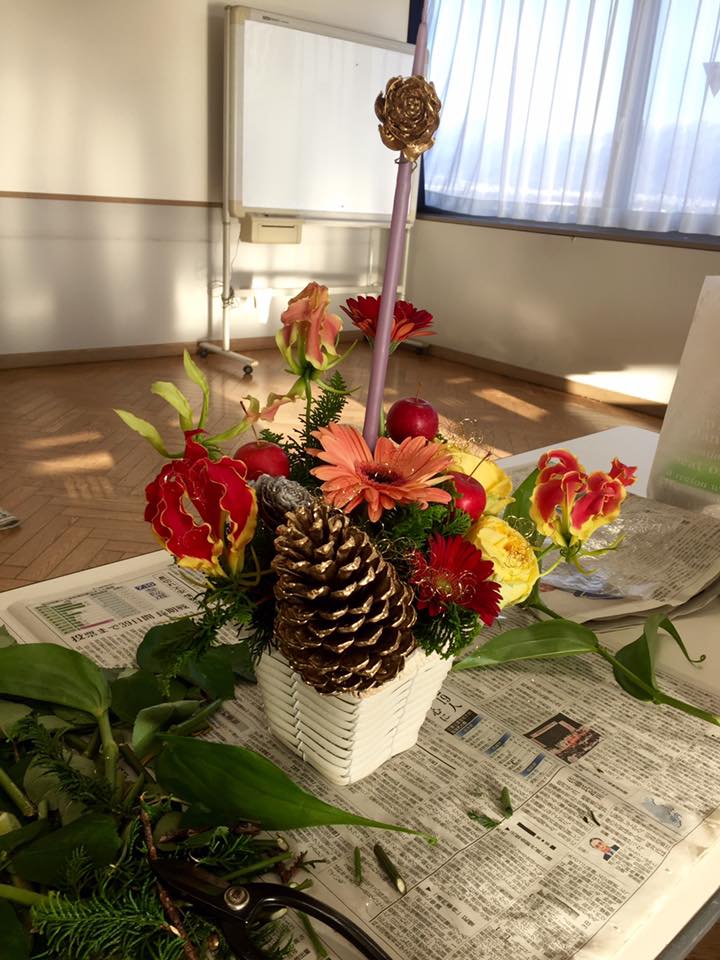 昨日は「花屋さんのアレンジ教室」講座がありましたよー\(^o^)/今回の作品テーマはもちろんクリスマス☆★中心にキャンドルが入ってます!キラキラした飾りもとってもステキ!みなさんそれぞれ個性が出てますね♫まだまだ受講生募集中!途中からでもお申し込みいただけます!見学もできますので、ぜひお問い合わせくださいね!