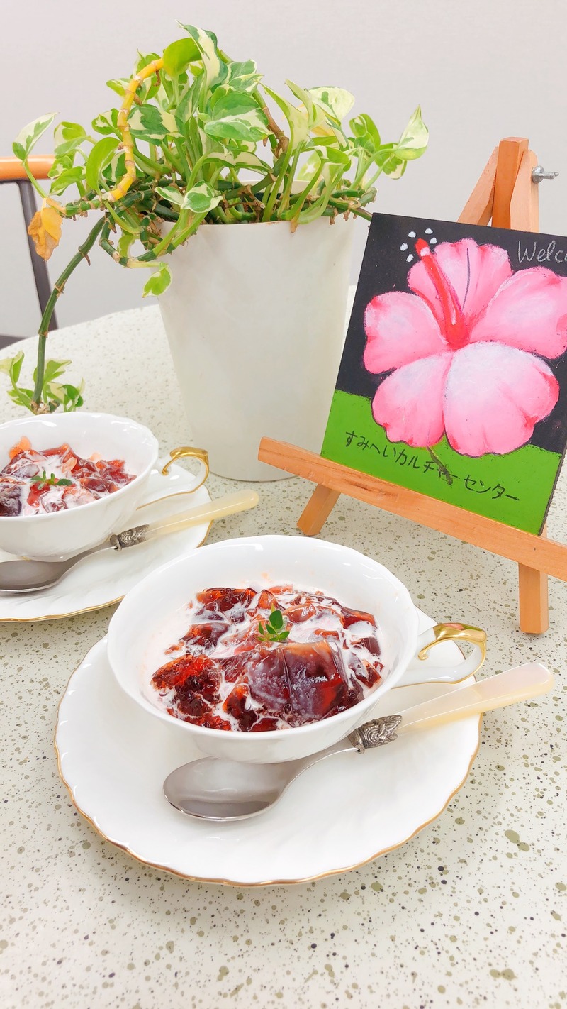 写真は講師の荒井先生からいただいた紅茶ゼリーです(^u^)