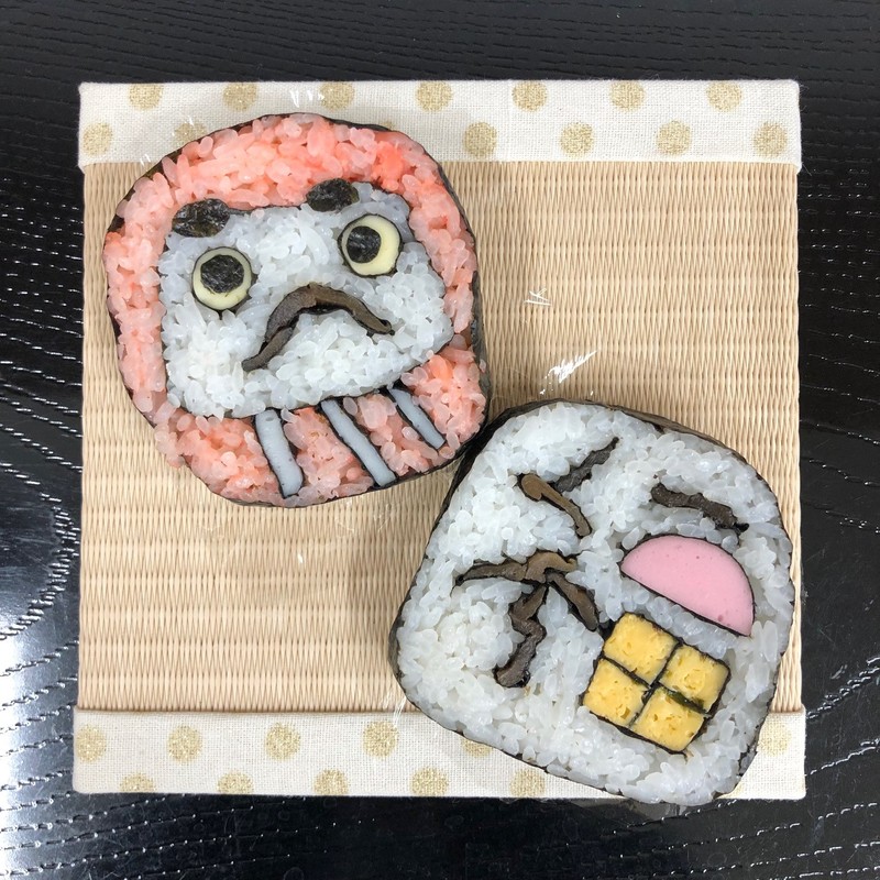 今回は「だるま」と「福」の飾り巻き寿司でした(^u^)