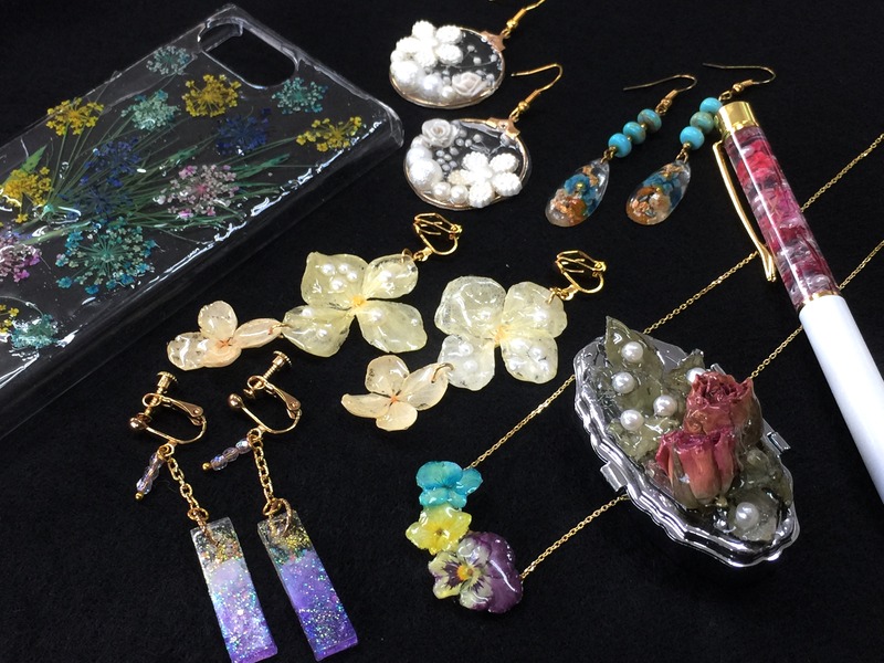 UVレジン(紫外線硬化樹脂)を使って、お好みのプリザーブドフラワーやパーツを閉じ込めご自分だけのオリジナルアクセサリーやクラフトを作りましょう♡